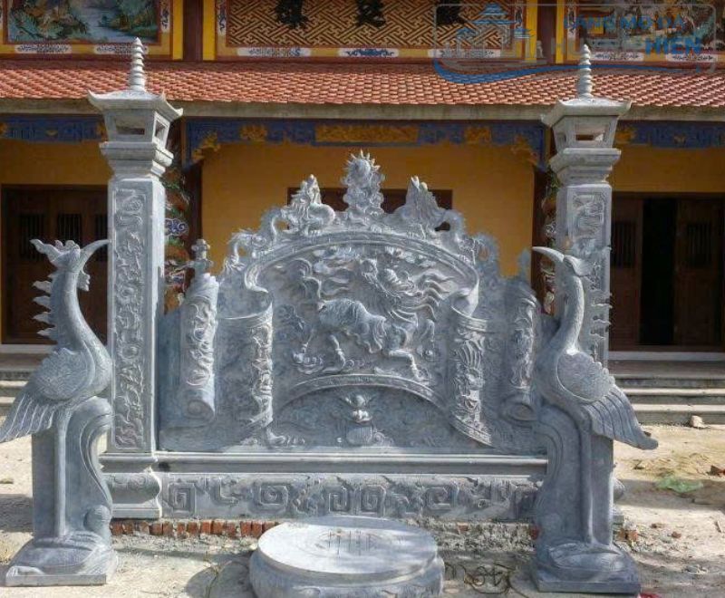 cuốn thư đá phong thủy trước nhà thờ họ đẹp