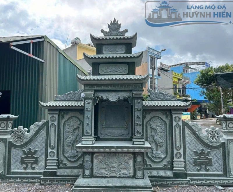 Lăng thờ đá mái đao chạm rồng phượng sắc nét