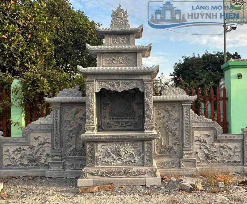 Lăng thờ đá mái đao chạm rồng phượng sắc nét