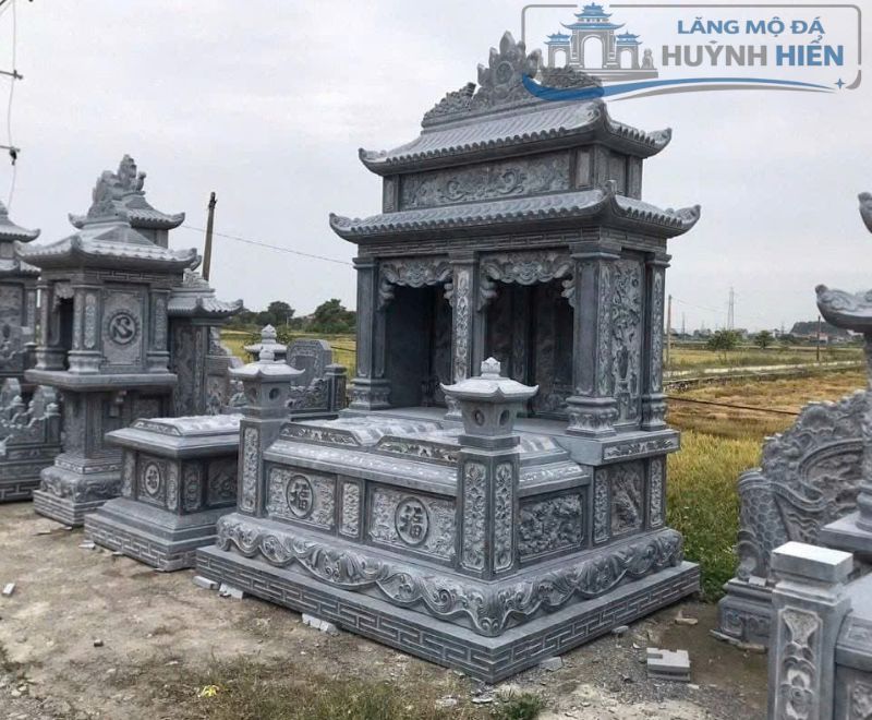 Mộ đá đôi xanh đen nguyên khối